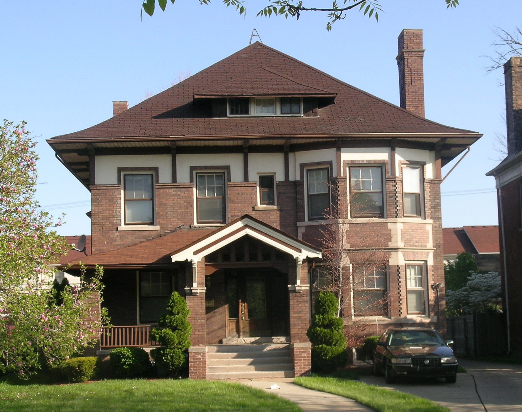 R & K Custom HomesНа фото: большой, двухэтажный, кирпичный, серый дом в классическом стиле с полувальмовой крышей