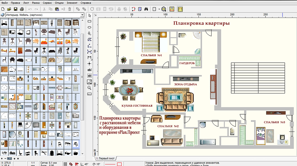 при создании проекта предметы легко перемещать и поворачивать;- позволяет создать разные варианты планировки, например, перемещать перегородки;