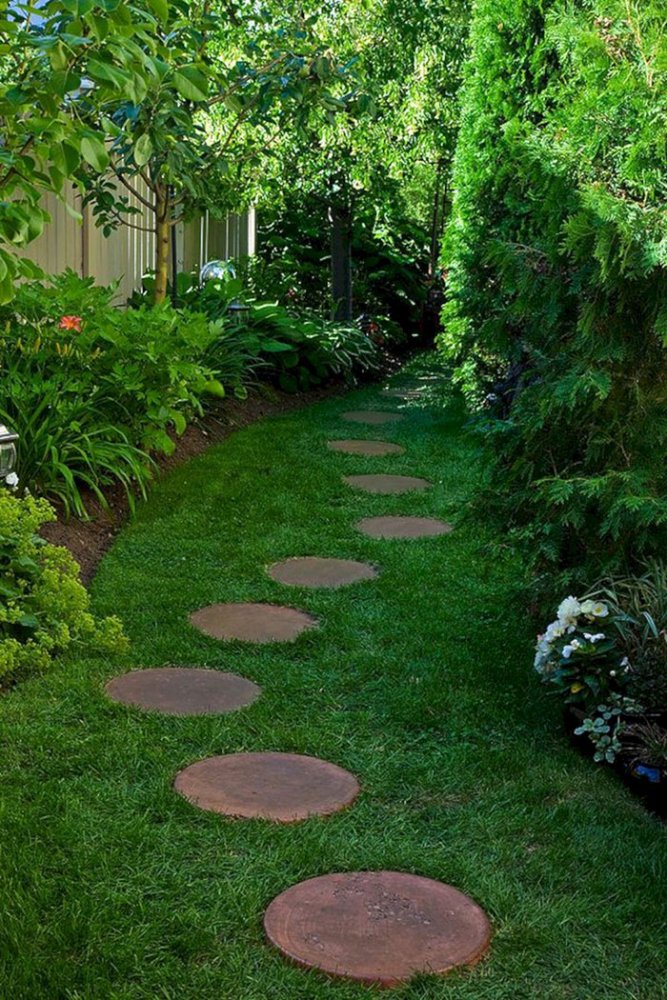 Но есть хитрый вариант, при котором можно сохранить целостность газона и одновременно устроить своеобразную тропинку, позволяющую пересекать травяное покрытие напрямую.