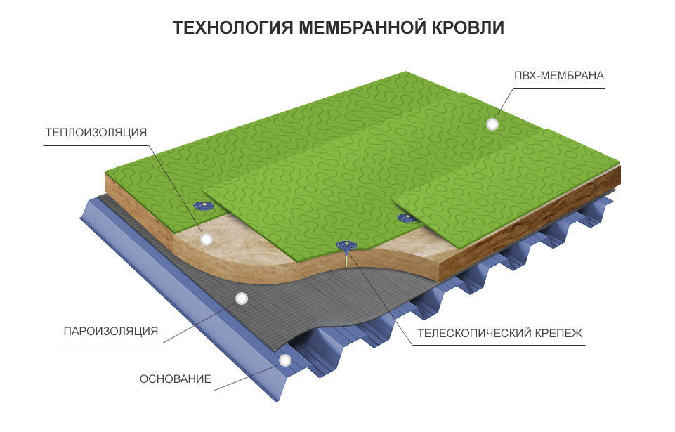 Мембранная кровля — монтаж, цена, работа по устройству, Москва
