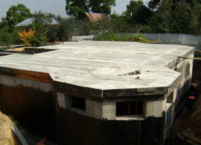 Цокольные помещения и подвалы находятся под землей, над её поверхностью выступает лишь меньшая часть сооружения, которую делают из бетонных конструкций. Можно купить готовые сборные плиты, а можно залить их непосредственно на месте постройки, что будет дешевле.