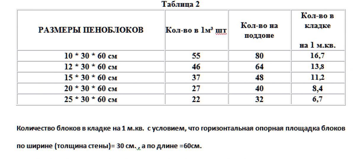 - Требуемый объем и вес блоков