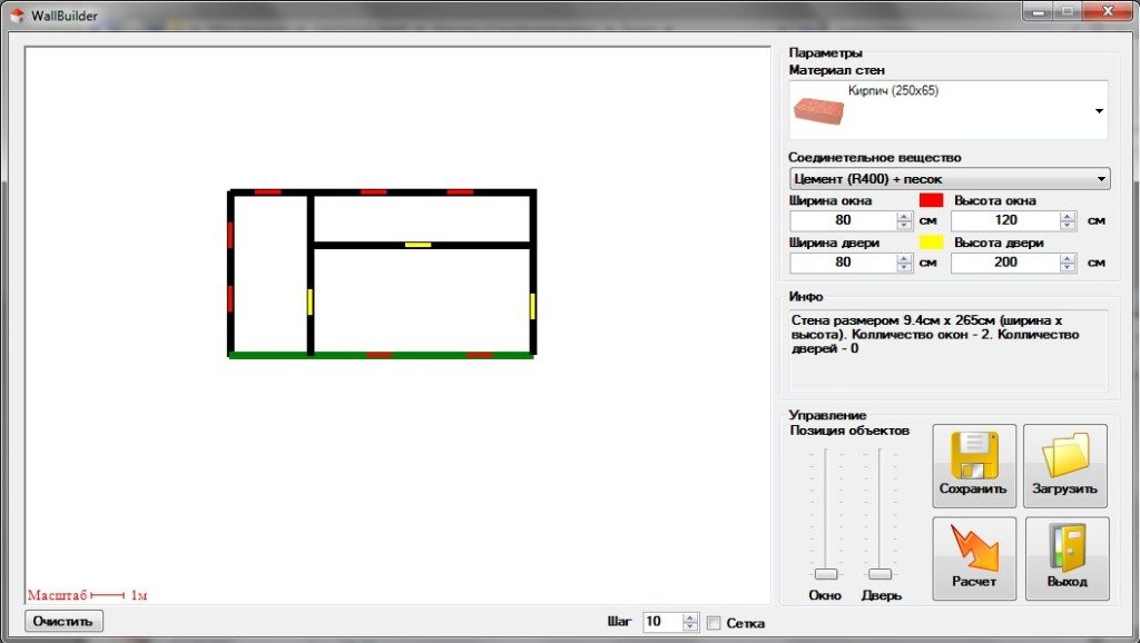 Объемы удобно считать как на весь объект, так и на отдельную его часть. Длина и высота стены задается в метрах.