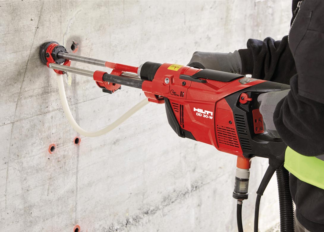 Колонковое сверление железобетона без использования воды, с мягким ударом и пылеудалением – это больше, чем просто тренд. В настоящее время это можно увидеть с первого взгляда в социальных сетях. Почти во всех соответствующих группах Facebook или Instagram можно буквально следить за конкретными работниками и компаниями по всему миру, которые настраивают и используют их идеальные настройки. Беспыльная и чистая работа – это реальное преимущество и улучшение. Особенно я n места, где колонковое бурение с использованием воды невозможно e или чрезвычайно сложно, например, в чувствительных зонах , таких как уже обитаемые помещения, гигиенические зоны, офисы или подвалы .