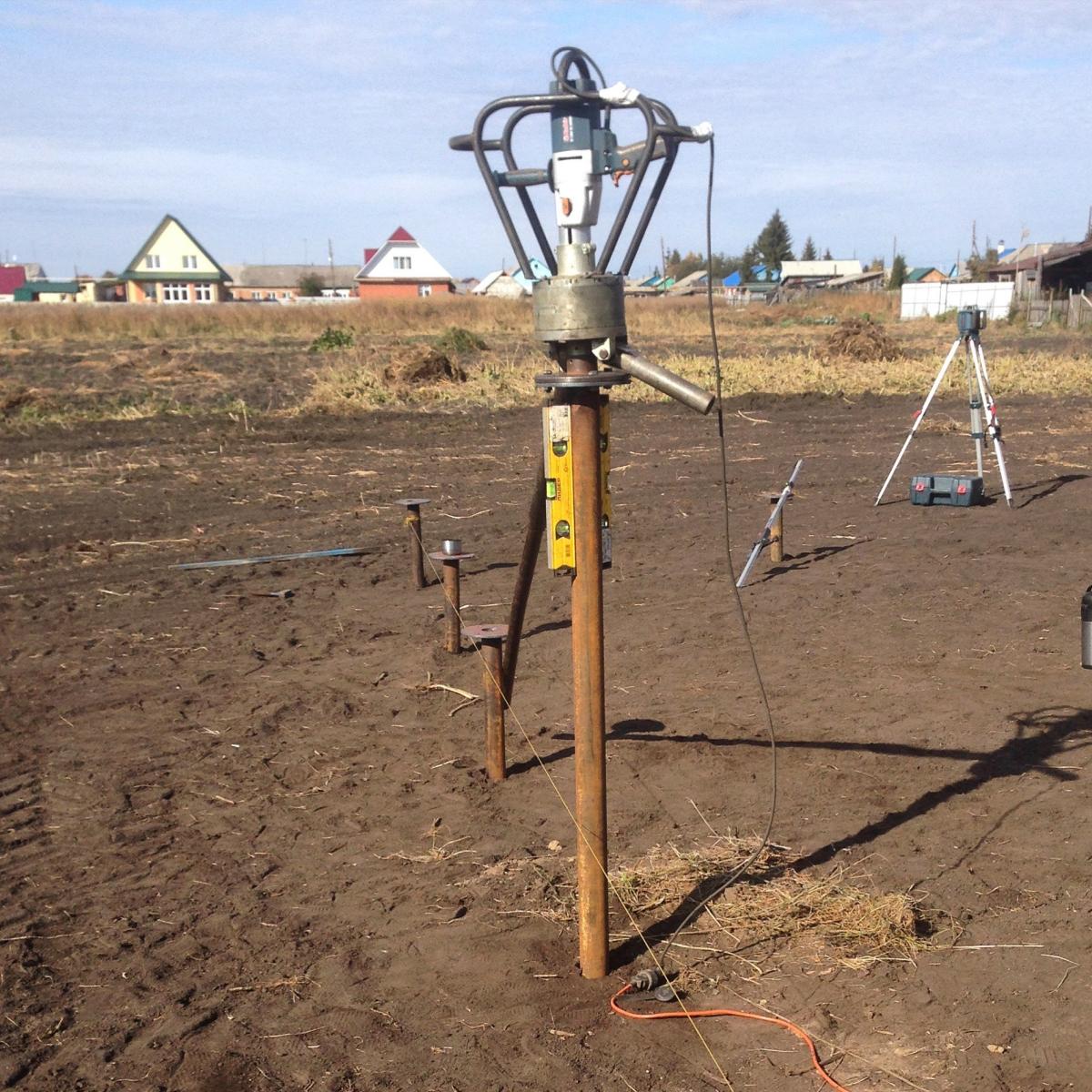 За один оборот свая погружается примерно на 20 см. Если этого не происходит, значит свая не ввинчивается нормально, и процедуру нужно повторить, немного сдвинув сваю в сторону, вдоль размеченной линии.