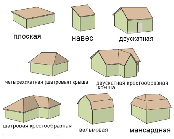 Виды кровли в зависимости от ее формы