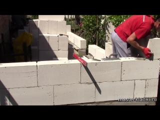 Видео процесса кладки пеноблоков на клей