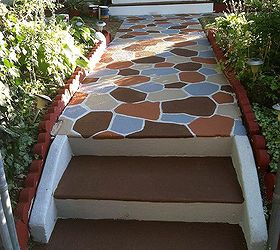 Самый оригинальный и интересный способ — выложить дорожку или ее часть пластиковыми крышками от бутылок.Благодаря тому, что чехлы имеют разнообразную расцветку, можно делать узоры и мозаику, даже придумывая целые рисунки.